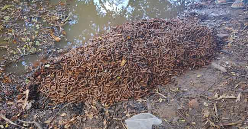 ඒ අනුව එහි තිබී හිස් උණ්ඩ කොපු 15,000කට ආසන්න සංඛ්යාවක් තිබී ඇත.