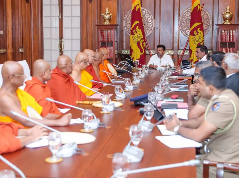 විෂ මත්ද්‍රව්‍ය සමඟ කටුනායක ගුවන් තොටුපොළේදී භික්ෂුන් පිරිසක් අත්අඩංගුවට පත්වීම සහ ඊට අදාළ විමර්ශන මෙන්ම, ඒ හමුවේ මතු වී ඇති තත්ත්වය පිළිබඳ සාකච්ඡාවක් ත්‍රෛනිකායික මහා සංඝරත්නයේ ප්‍රධානත්වයෙන් ජනාධිපති අනුර කුමාර දිසානායක මහතාගේ සහභාගිත්වයෙන් ඊයේ (28) පස්වරුවේ ජනාධිපති කාර්යාලයේදී පැවැත්විණි.